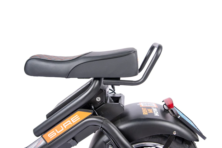 Met een maximale snelheid van 25 km/u, een fluisterstille elektromotor en een licht gewicht van 66 kg rijd je geruisloos en duurzaam. De E-Chopper is uitgerust met dikke banden, een breed stuur en een comfortabel tweepersoonszadel met voetsteunen voor de passagier. Zo geniet je samen van elke rit!