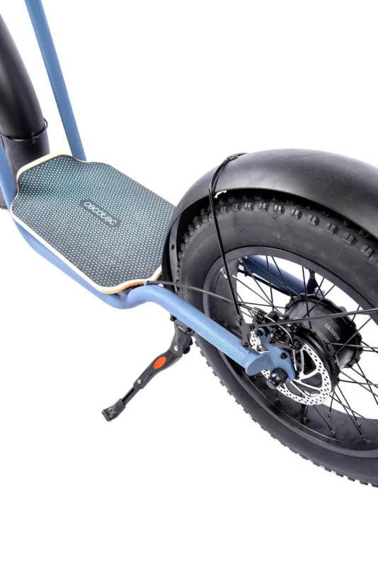 De FAT Runner is uitgerust met een sterke hubmotor en een stabiele, extra grote houten voetenplank voor optimaal comfort en controle. Dankzij de elektrische ondersteuning en een actieradius tot 75 km verken je zonder moeite langere en uitdagendere routes.
